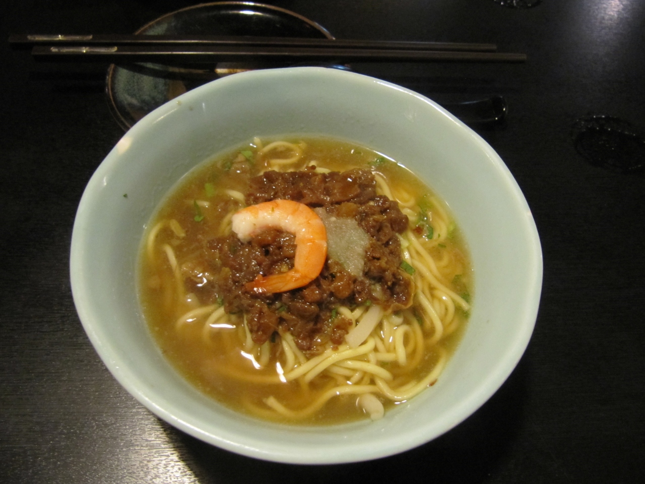 台南にある店の支店。美味しいけれど量が少ない。味はまあまあ。どこかで食べた後に立ち寄る際に便利な店。早業の麺のお湯切りを見ることができる。値段は安め。店内はレトロな雰囲気を出しているがすごい清潔感あふれる。