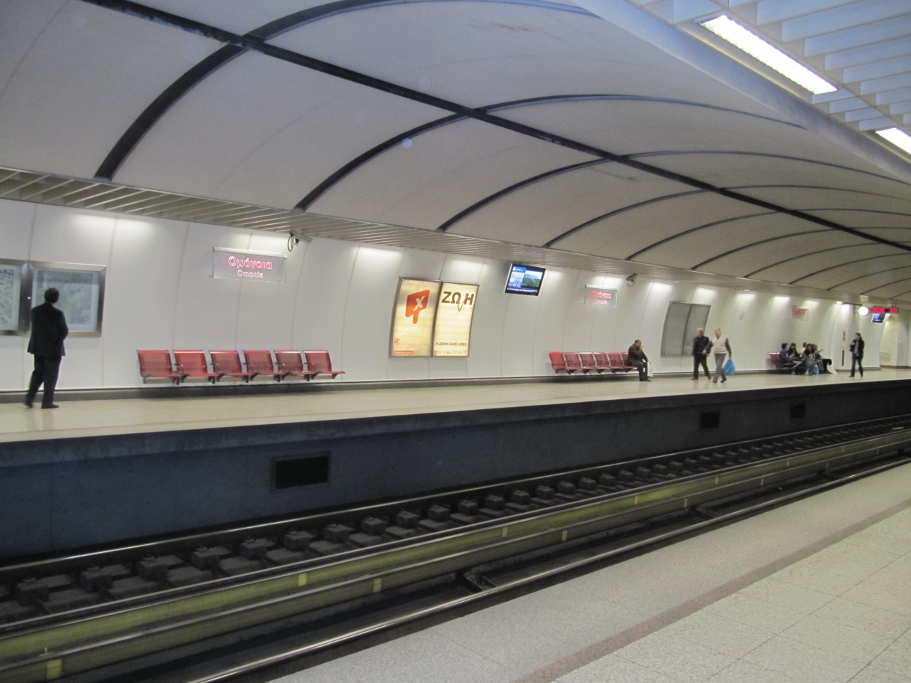 アテネの交通の中心地。地下鉄駅、オモニア駅を利用するときに通る。ただし地下鉄はよくストライキでとまるので期待しない方が良い。警察官がカフェでお茶を飲んでサボっていたりした。また,広場では屋台みたいな出店があり、おばあさんが30セント位でパンを売ってくれた。