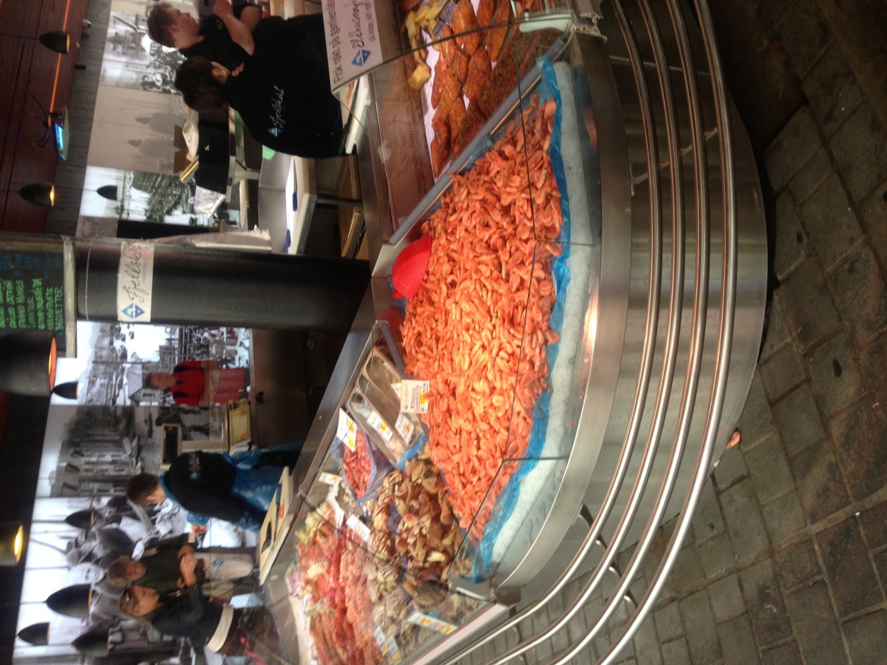 朝7時ごろはまだ数件の営業ですが、昼になると、一面にお店が広がります。その場でお刺身やグリルした魚を食べることができます。サーモンのお店では、積極的に試食を進めてきます。物価が高いノルウェーではランチに最適です。