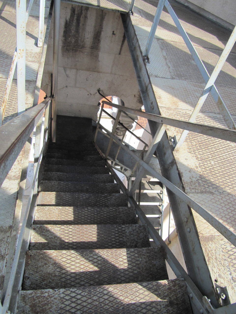 隣接された場所にある鐘楼は内部にある階段にて登ることができる。階段はところどころ手すりが外れていたり、さびていて落ちないか心許なかったが、上まで行けばアドリア海と街並みの両方を臨むことができて最高だった。