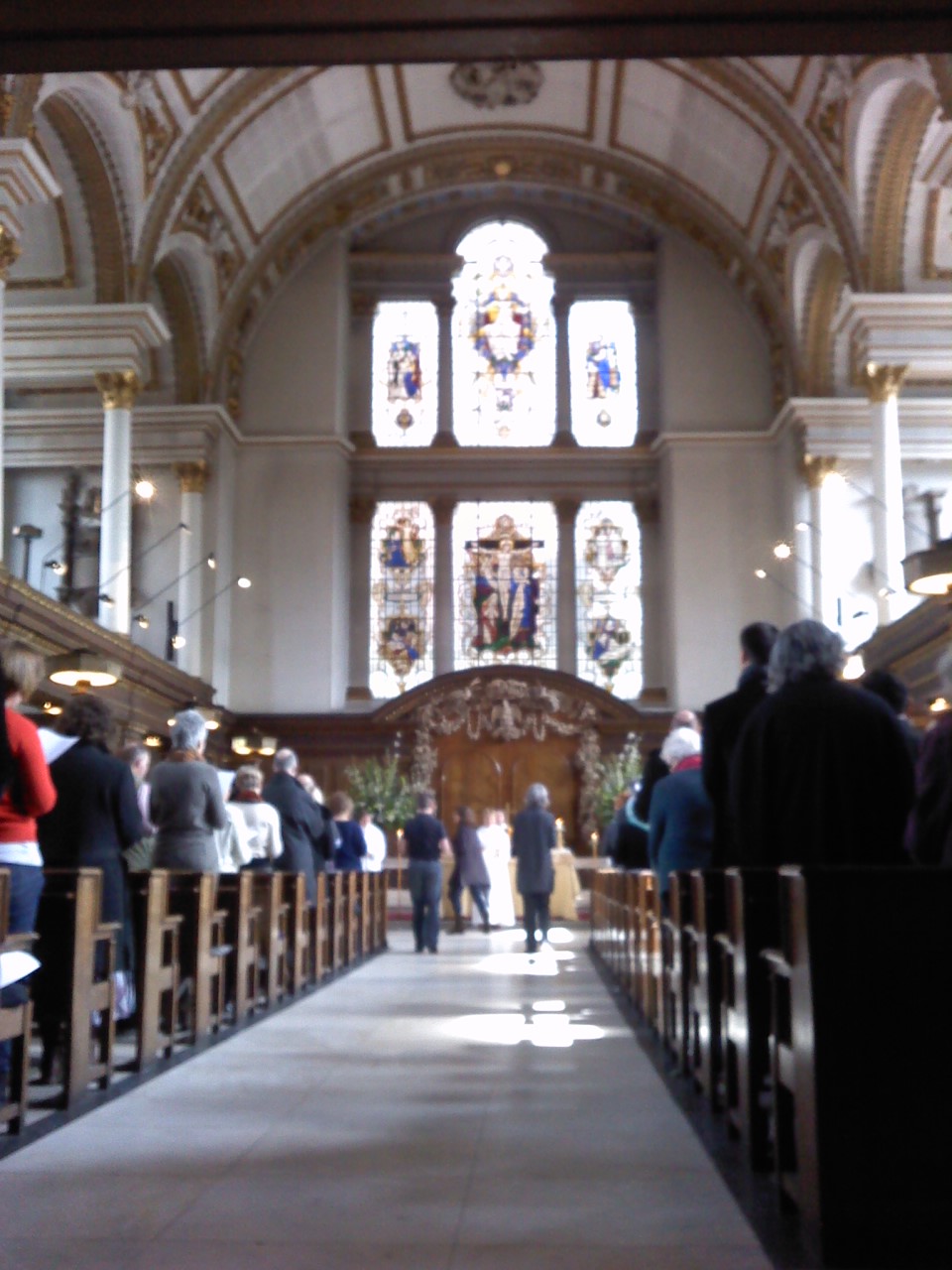 こじんまりしている教会ですが、中に入るとステンドグラスがとてもきれいです。