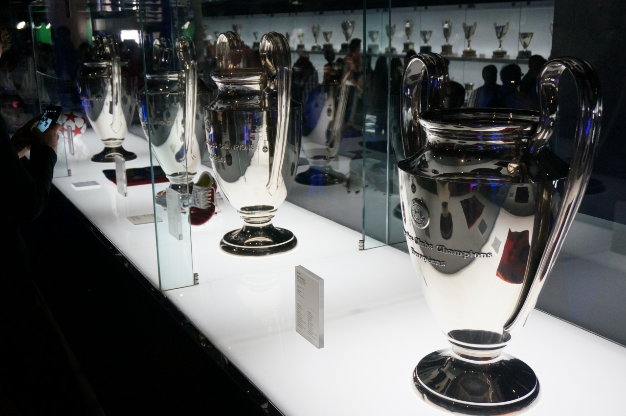 CL観戦翌日にスタジアムツアー(CAMP NOU experience)に行きました!スタートと同時に始まる博物館にて堂々たるトロフィーの数々・・・もうそれはそれは数え切れない数です!!それだけで圧倒されてしまう博物館です。ビッグイヤー4つとメッシのバロンドール4つも展示されており、バロンドールとは一緒に写真も撮れます!トロフィーだけでなく、昔のユニフォームや過去の歴史的シーン、タイトル獲得時のパネル、ゴールシーンを映像で振り返ることができる大きなタッチ式パネルもあったり、ものすごく横に長いビジョンに感動シーンが流れていたりと、もうバルサ1色でした!博物館が終われば、スタジアムのスタンド、プレスルーム(ビッグイヤーを掲げられる記念写真可:有料)、ロッカールーム(今はアウェイのみ)、ベンチ、ピッチ、最上階にあるテレビ局などのアナウンサー実況席とスタジアムを満喫できる仕組みになってます。ずーっと見ていたいスタジアムツアーで最高でした!!次回行く時には、ビッグイヤーが増えてることを願う!!