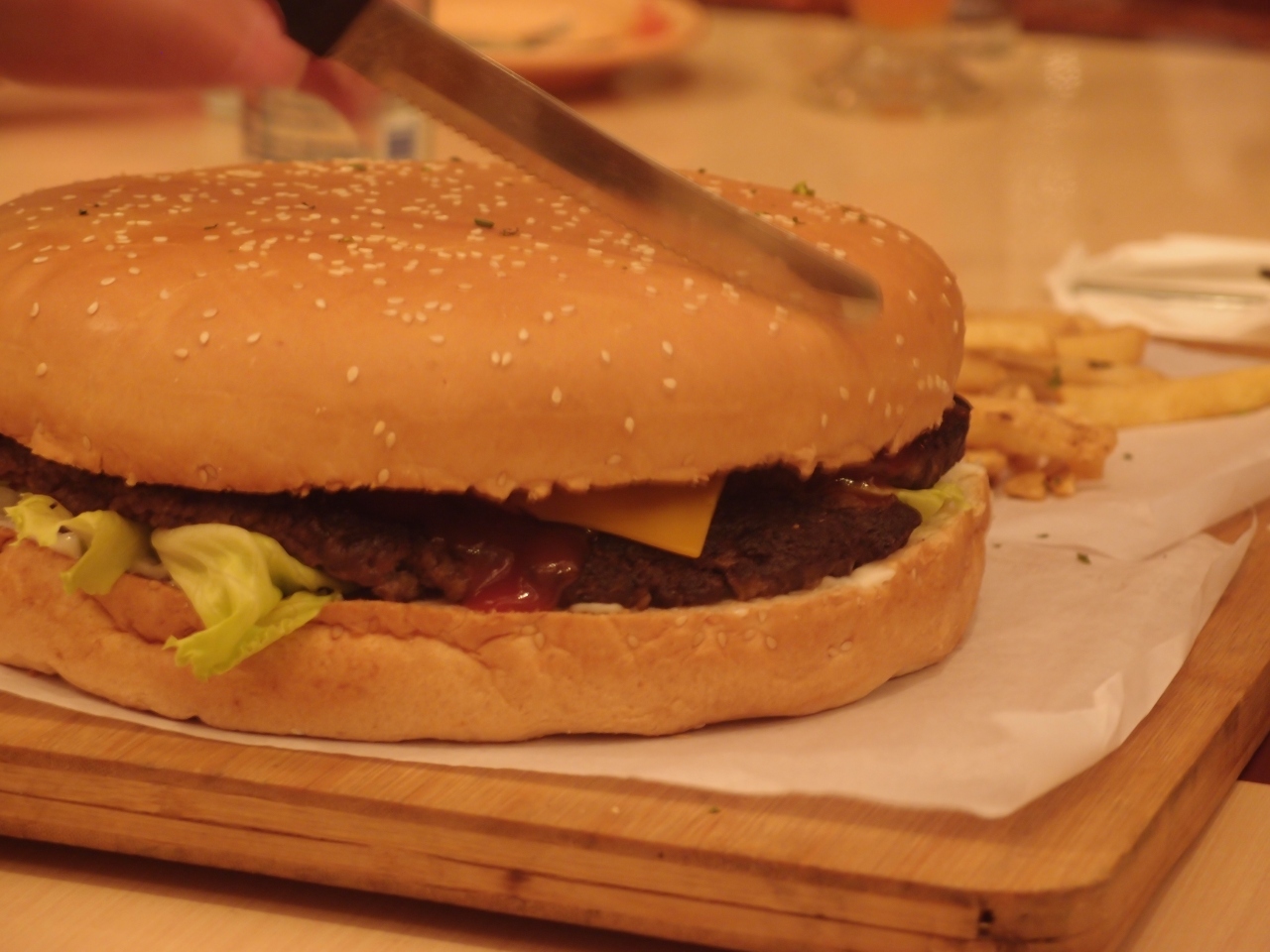 有名なのは直径30cmぐらいの大きさのビッグバーガーで、6人ぐらいでシェアして食べました。味もそこそこおいしかったです。また、ポークステーキも地元料理風に味付けしてあって、かなり満足できました。その他の料理も頼みましたが、ハズレはなかったです。