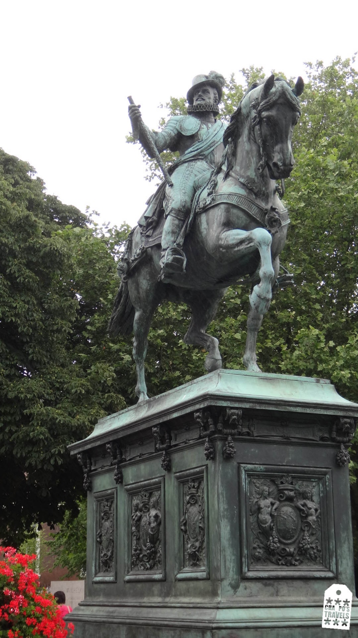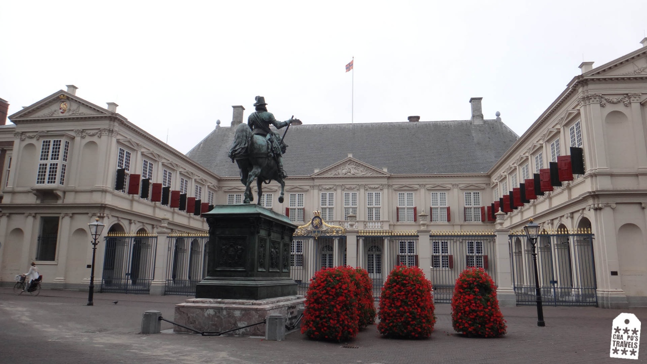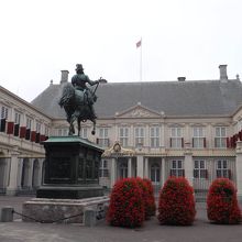 オラニエ公ウィレム1世の像の正面に、ノールダインデ宮殿はあります。先日退位した女王ベアトリクスの執務用の宮殿で、居城ハイステンボスから通っていたそうです。見学はできないので、外から写真を撮るのみです~