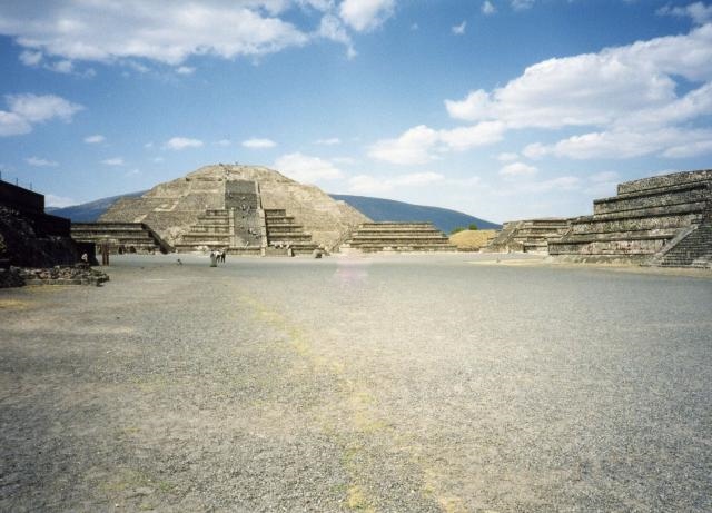 メキシコ・テオティワカン遺跡へは高いお金を出せばメキシコシティーから日本語のガイドがついたツアーもありますが、個人で行く場合は、メキシコシティーの北バスターミナルから路線バスにのることになります。非常に大きなバス停で乗り場を探すのに朝からかなり手間取りました。結局テオティワカン行きは左の一番端にありました。チケット購入後、本数も多いようで乗車するとすぐ出発、1時間弱ほどで遺跡に到着しました。往復のバス代と遺跡の入場料を合わせても1000円いかないぐらい、日本語のガイドツアーの1/10ぐらいの出費で観光できました。