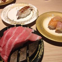 お店の中は予約が不要なほど空いていましたが、お寿司はどれも美味しかったです。そして回転ずしと謳っているのにお皿は回っていません。どれも店員さんに注文して握ってもらいます。一応レーンだけは動いてました…。