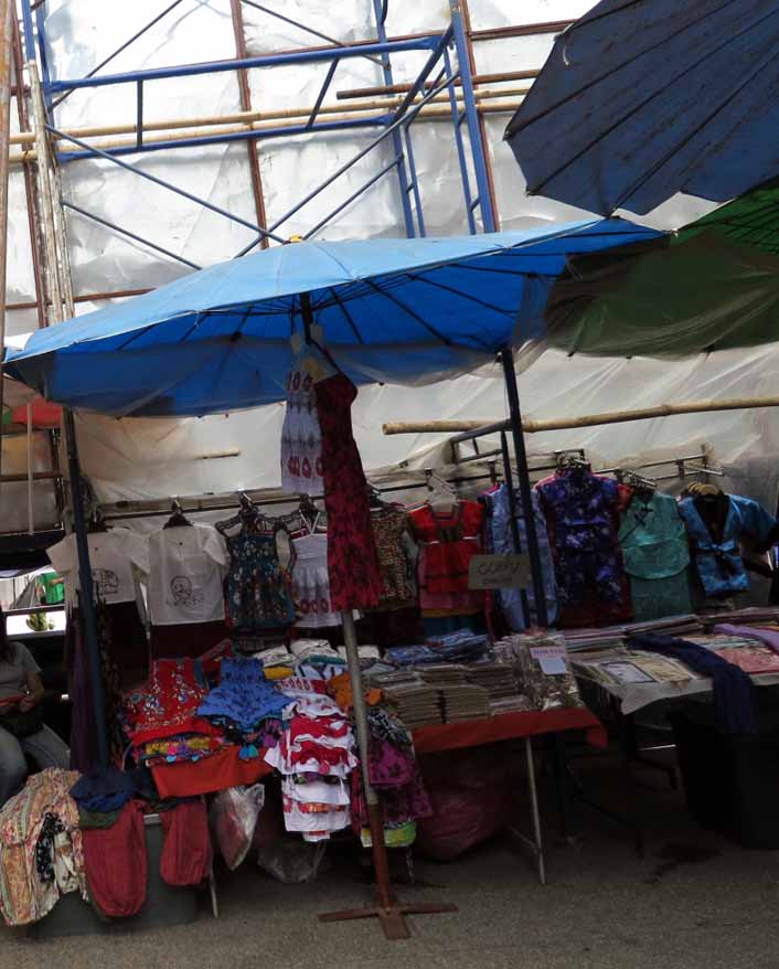 サンデーマーケットは、常設の建物はないので、どこのお店もパラソルを建てて商売をしています。