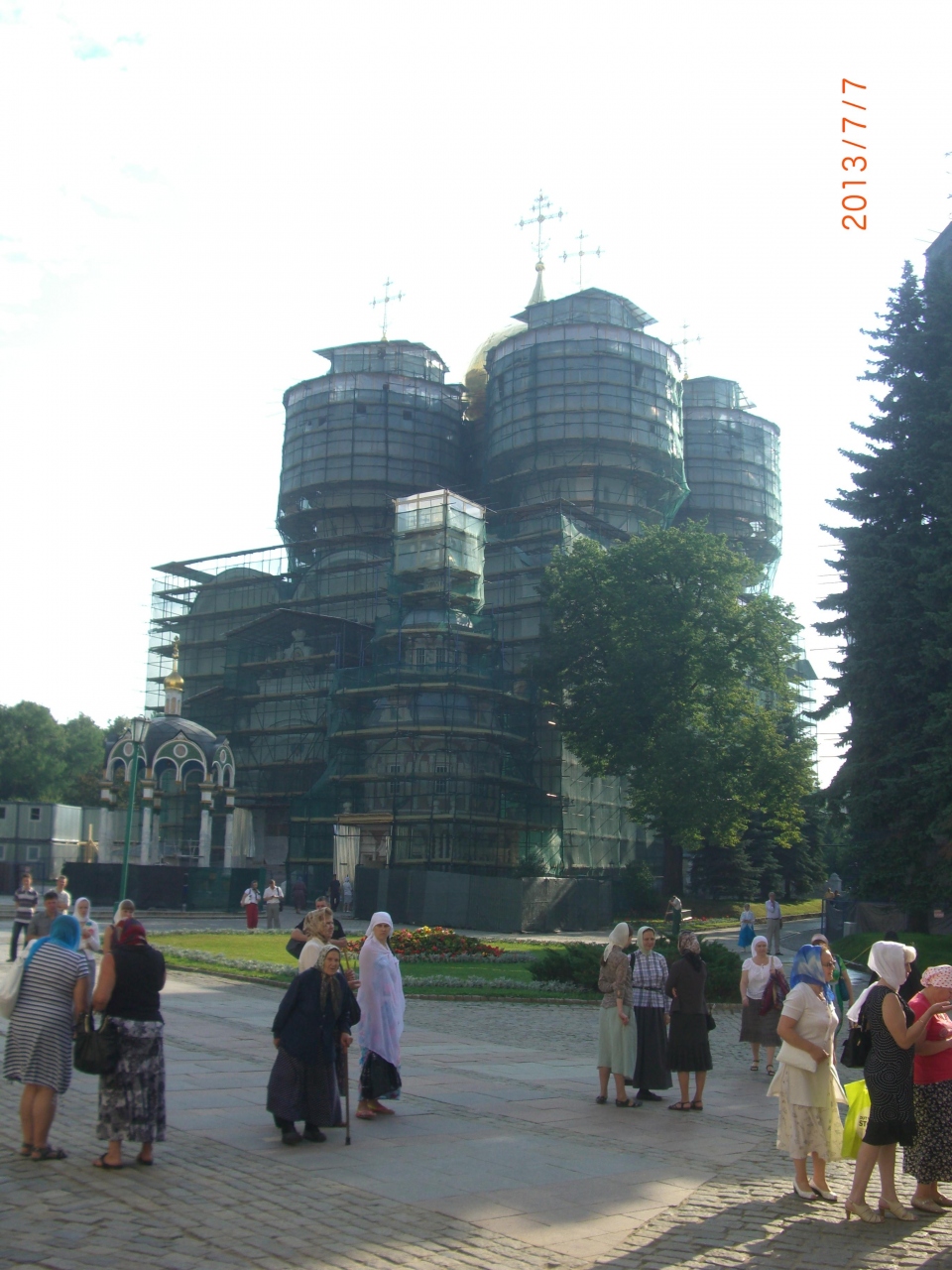 7月7日に訪れましたが目下トロイツキー聖堂を除き、シンボルのウスペンスキー大聖堂を始め鐘楼・スモレンスカヤ教会・聖霊降誕教会は補修の足場が組まれ見る影ありません。尚、女性は聖堂・教会へ入場の際は帽子・スカーフ着用がエチケットです。