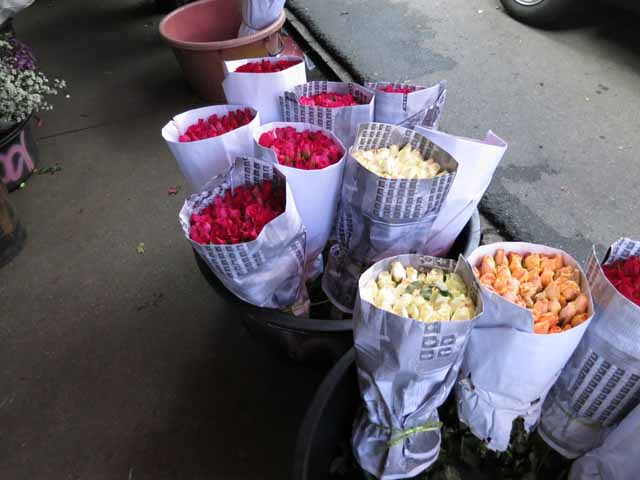 市場の一角、川沿いに近い道沿いには、お花を扱うお店がズラリ並んでます。