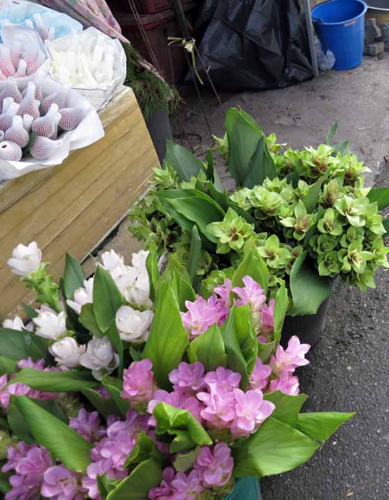 でも、レストランとか、ホテルとかには切り花が、綺麗に飾られている。どこでみなさん買うとかというと、このトンラムヤイ市場だそうです。