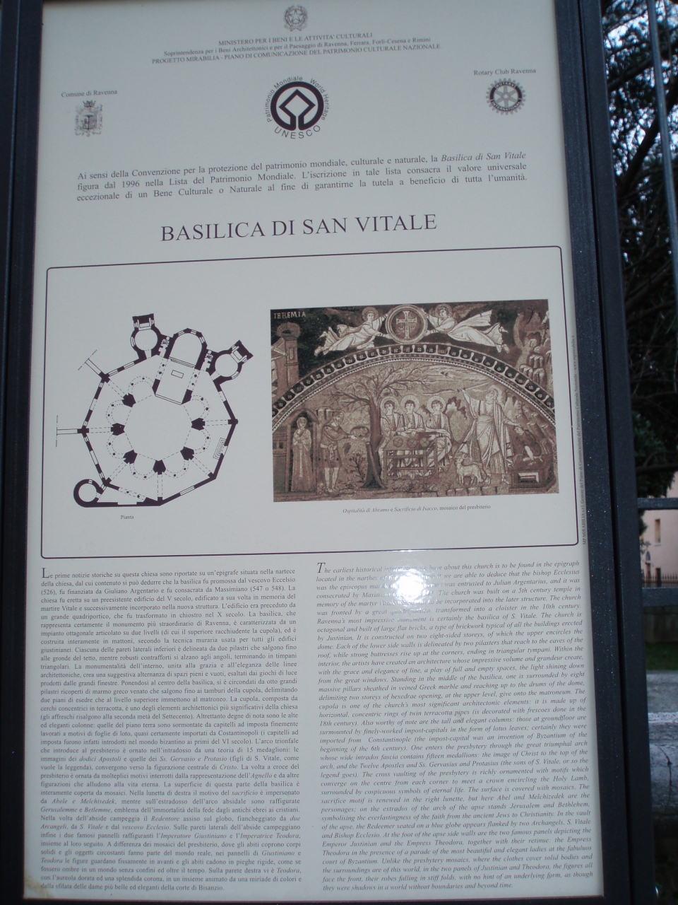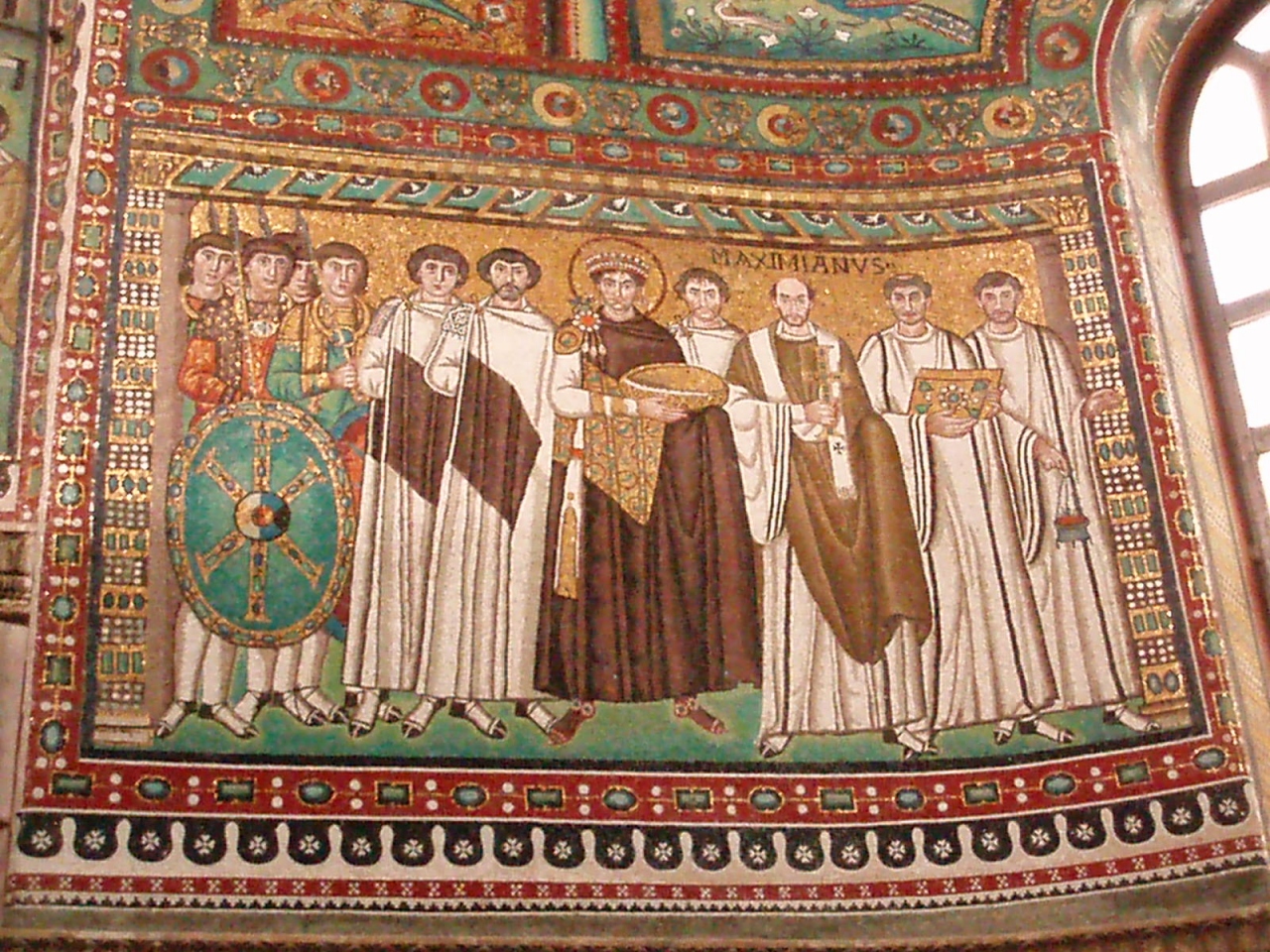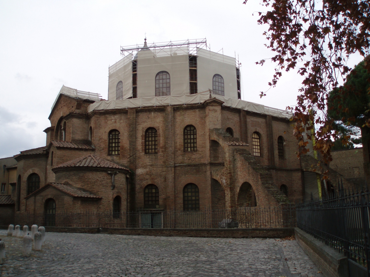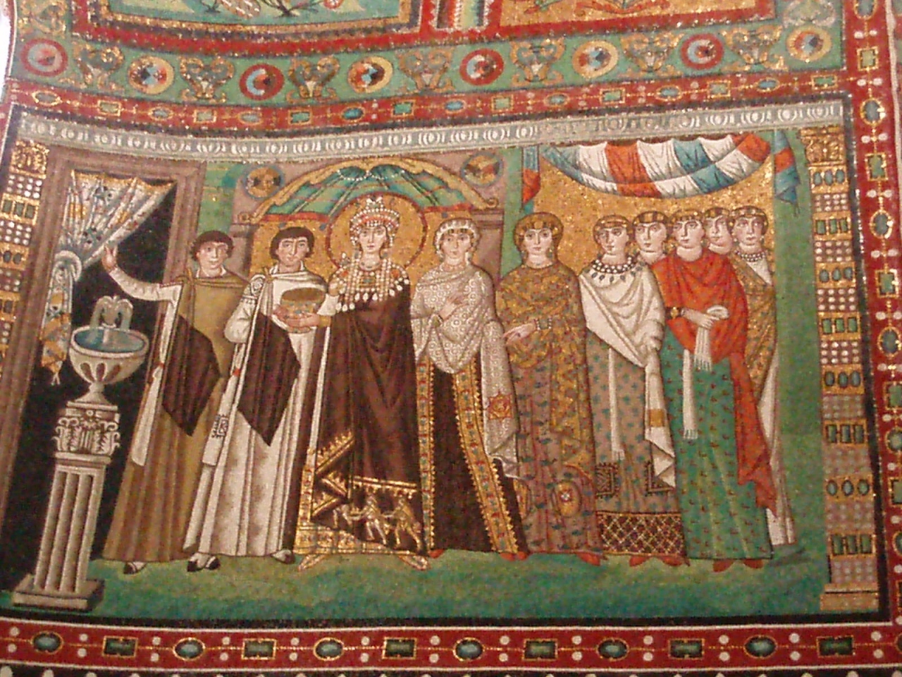 ラヴェンナ駅からは少し歩きますがここの教会を有名にしているのは有名な「ユスティニアヌス帝とその廷臣たち」と「テオドーラ皇后と女官たち」の2つのモザイク。
