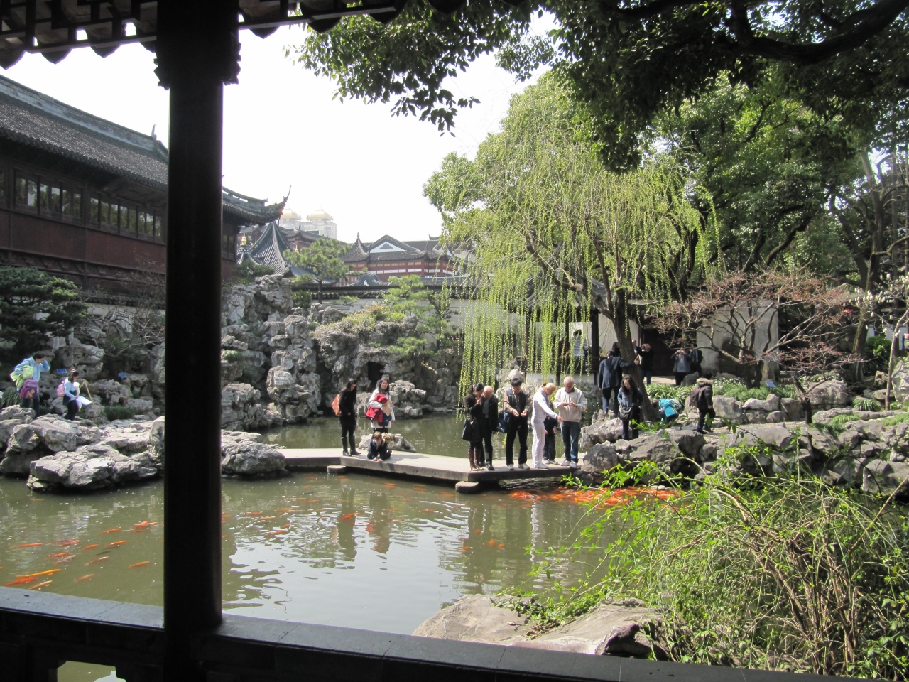 中国の都市の中では歴史的なもの(明朝,清朝時代のもの)が上海では少ないが、ここは上海を代表する庭園。典型的な中国式庭園である。観光客が多く特に中国人が多い。池にはコイが泳いでいる。また庭園内にはお茶をいれてくれるところがあった。