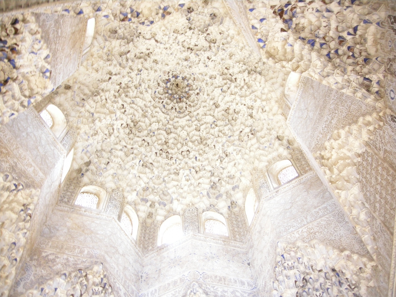 団体旅行でスペインに行きました。イスラムの有名な建築であるアルハンブラ宮殿は旅のハイライトの一つです。外見はなんとも飾り気のない、埃っぽい遺跡なのですが、建物の中に一歩足を踏み入れると、息をのむほどの美しい装飾が壁や天井一面に施されています。何度でも行きたくなる場所です。