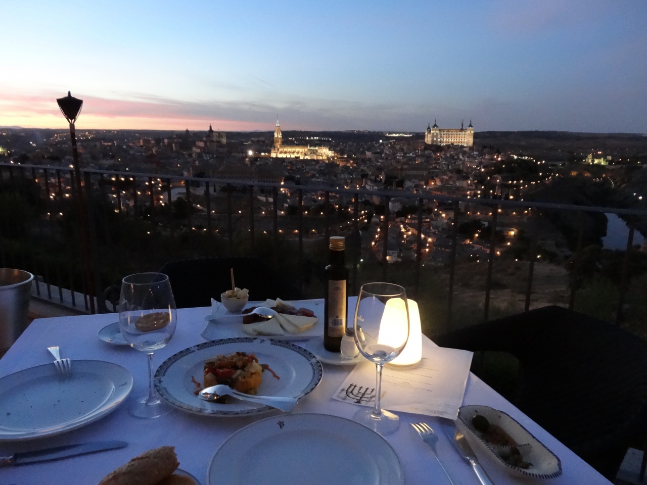 パラドール内にあるレストラン。ここから眺めるトレドの街が最高に綺麗です。お勧めの時間帯は夕方。昼の景色から夜の景色までどちらも堪能できます。料理のほうは特別な印象はありませんが、景色を見るだけでもその価値はあります。