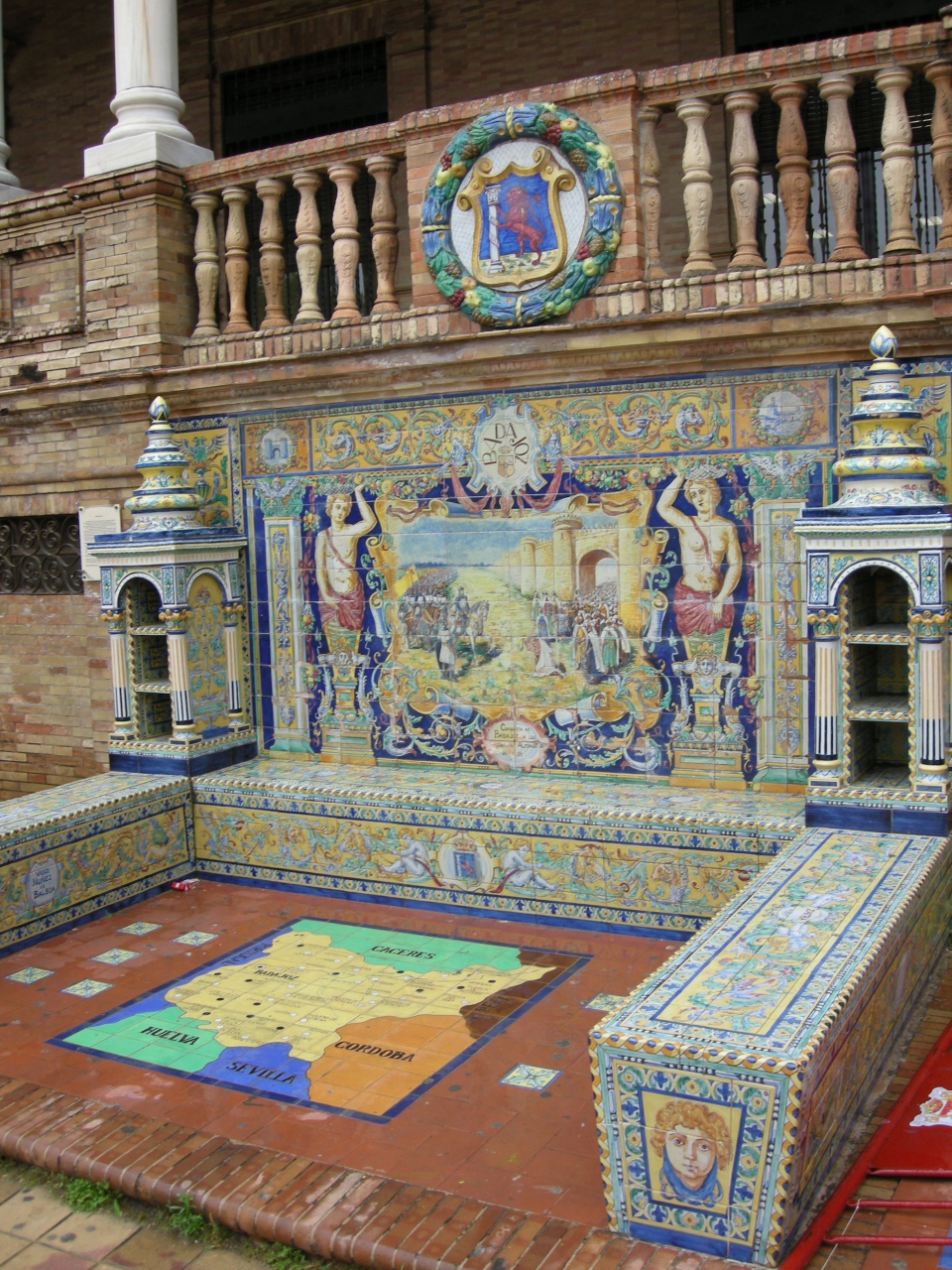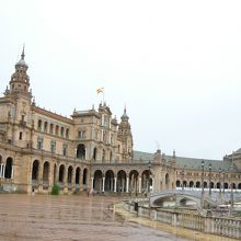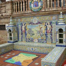 1929年にセビリアで開催された万国博覧会「イベロ・アメリカ博覧会」の会場施設として造られたものだそうです。周りを円形の建物が囲っていており、中はかなりの広さです。スペイン各県の歴史的出来事を描写した壁面タイル絵がかわいらしくてなかな良かったです。