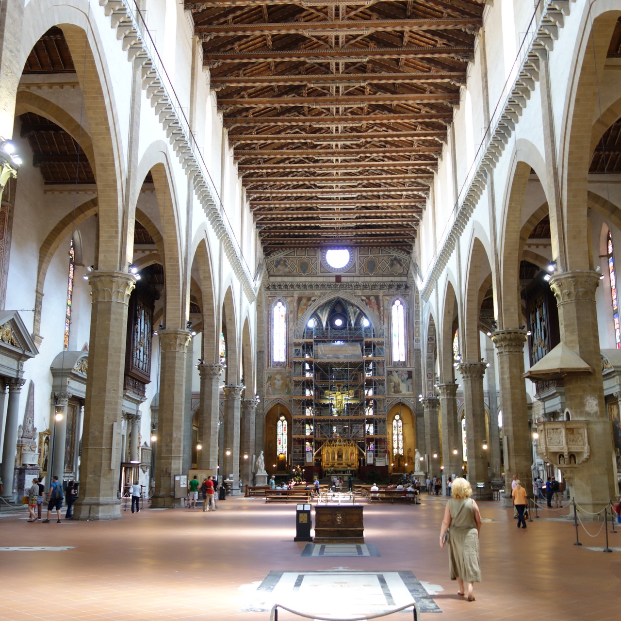 教会前の広場も広いし,建物のファサードも立派なおおきな教会です。内部にはガリレオをはじめとする有名人の棺おけが飾ってあります。フィレンツェでも一大勢力をほこった教会なのでしょう。いちどはたずねるべきところでしょう。