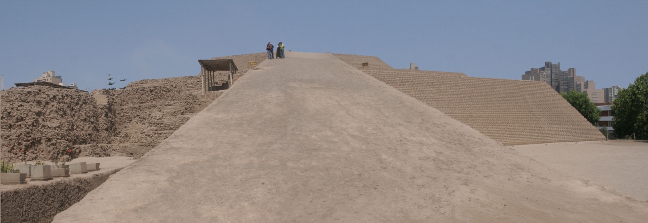 旅行本には、リマ文化の遺跡と紹介されています。リマ文化はよく分かりませんが時代的にみるとワリ文化(西暦500年~900年プレ・インカの文化)の時代の様です。住宅街のど真ん中に、日干し煉瓦を積み重ねた遺跡が残っていることが奇跡の様に思います。表面の煉瓦が崩れて大きな丘になったことが開発を免れたのでしょう。1度見る価値がある遺跡と思います。