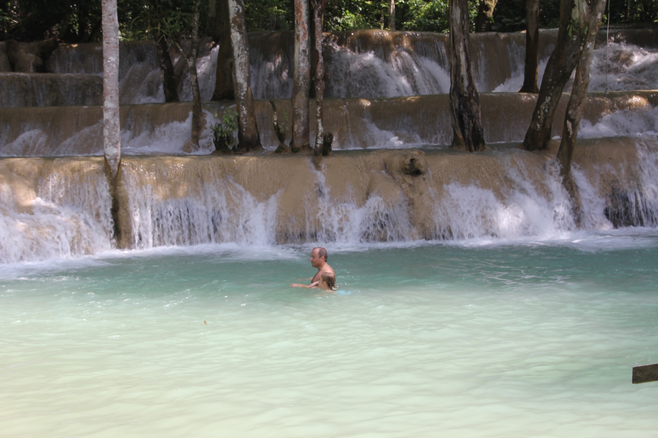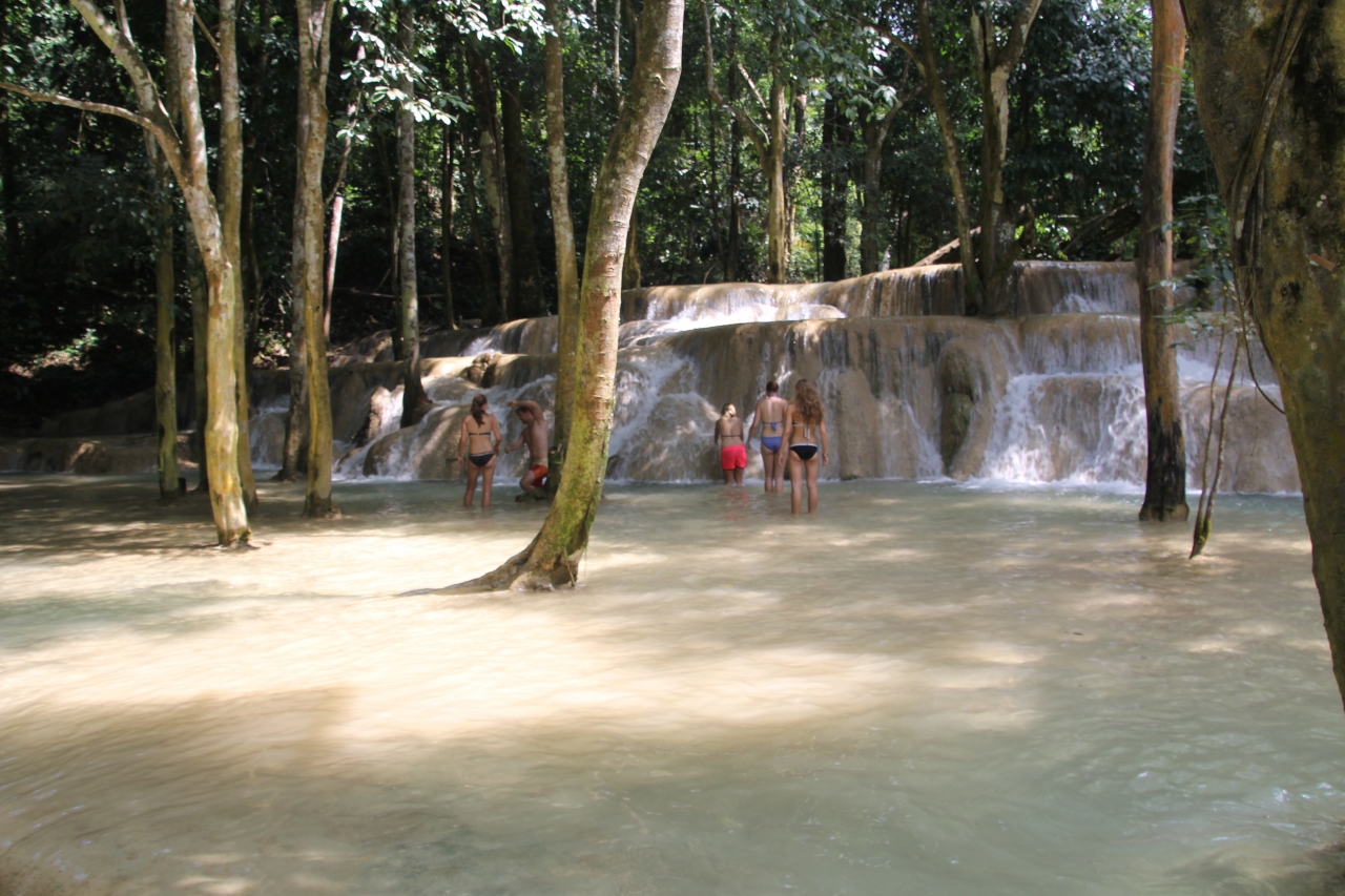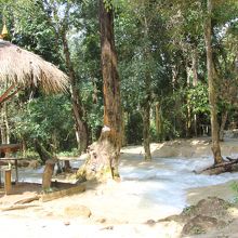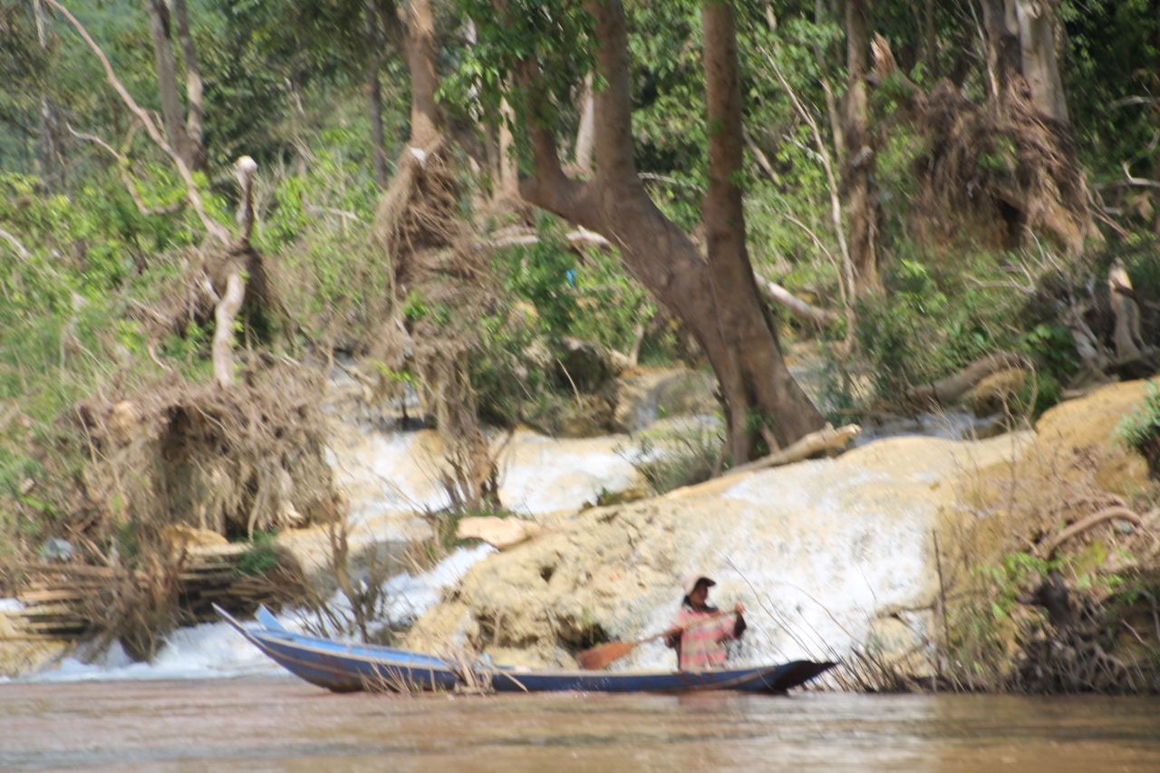 今にも転覆しそうなボートに乗り、10分ほどで到着。滝というには小さいですが、雨季の終わりだったせいか水量はたっぷり。澄んだ水色がとても綺麗です。