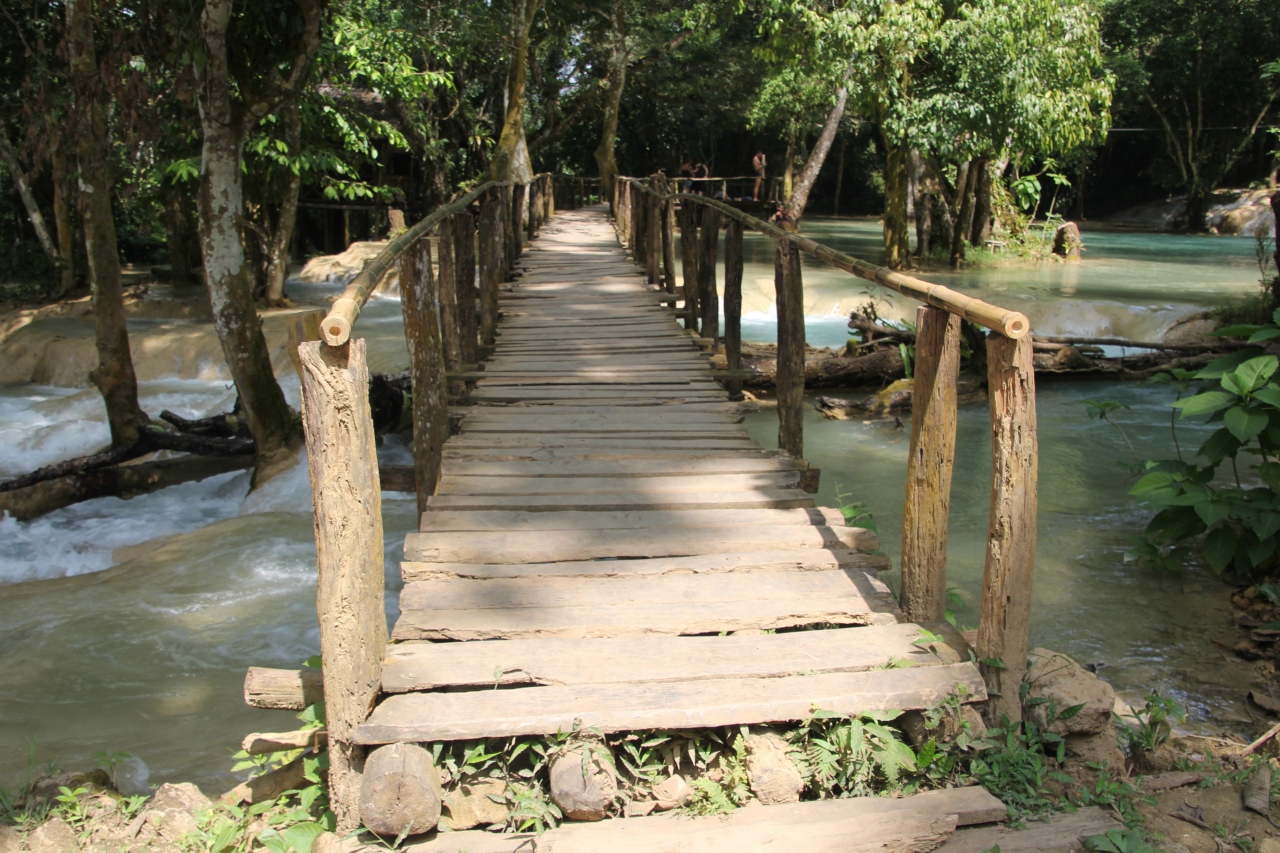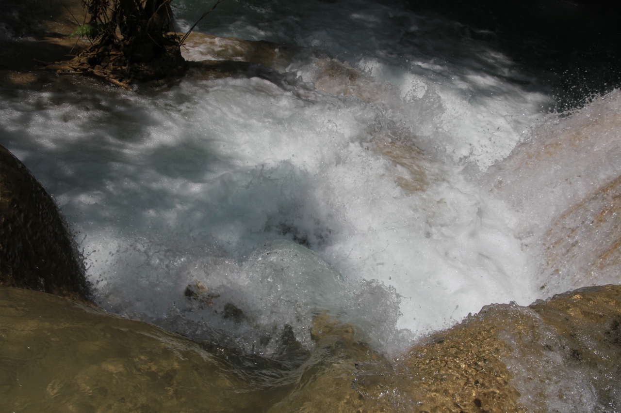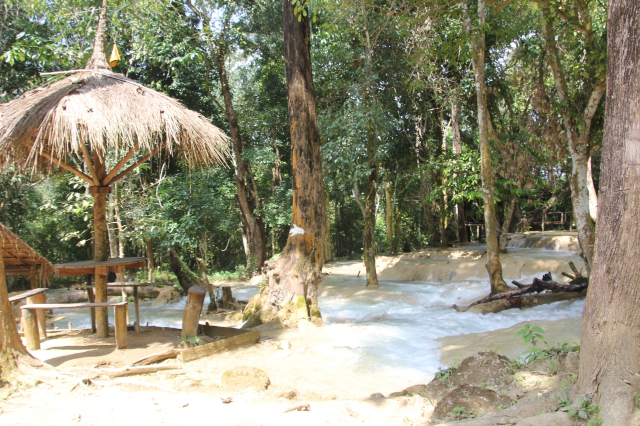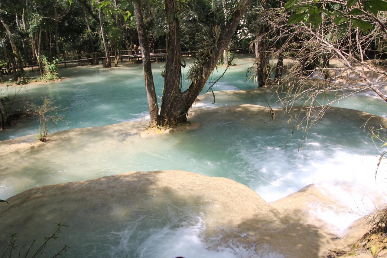 今にも転覆しそうなボートに乗り、10分ほどで到着。滝というには小さいですが、雨季の終わりだったせいか水量はたっぷり。澄んだ水色がとても綺麗です。