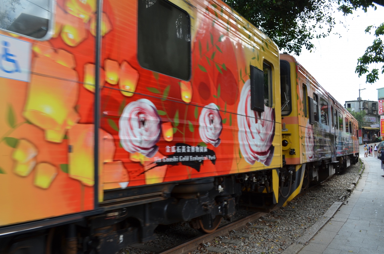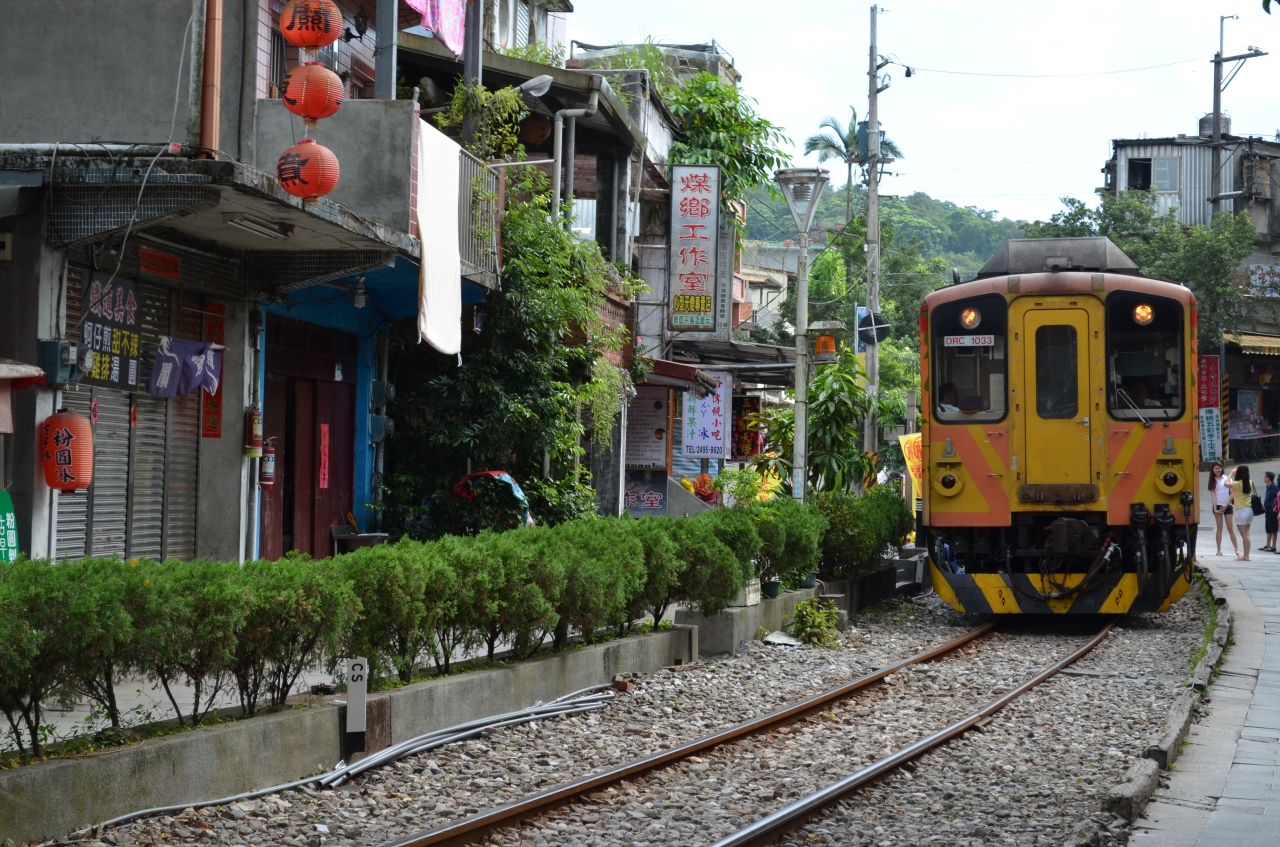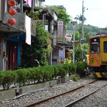 台湾で一番楽しかった場所。列車がお土産屋さんの横ぎりぎりを通る風景が楽しいです。