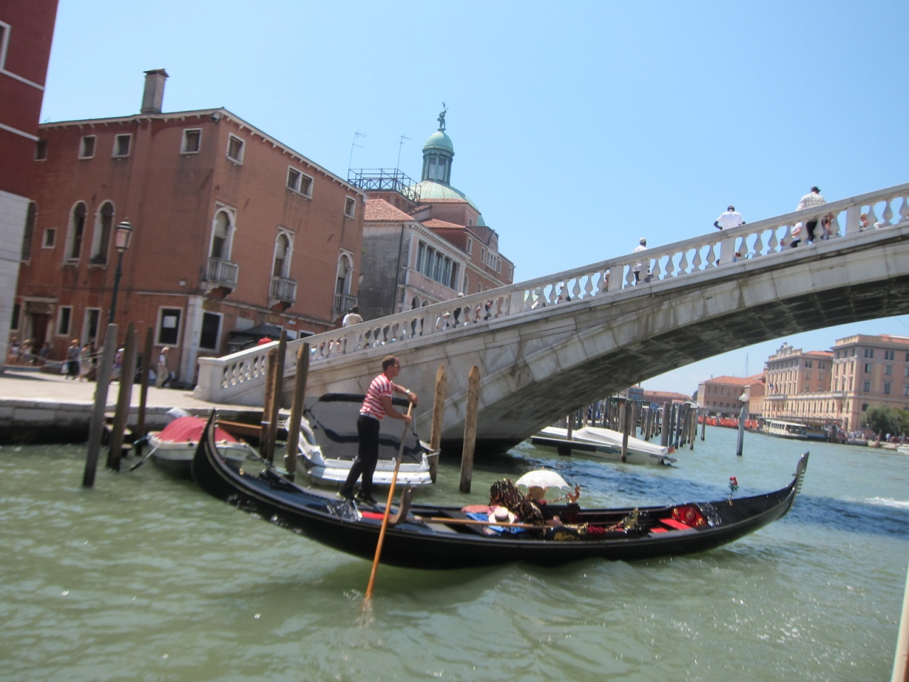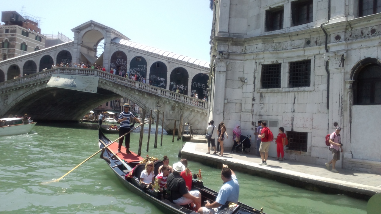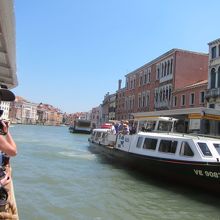 サンタ・ルチア駅の前からマルコ広場最寄りのGiardinettiまで利用しました。その間20~30分。ヴェネツィアといったらこの景色、かの有名なリアルト橋などをくぐり、行き交うゴンドラ、岸の商館などを眺めながら、水面を渡る涼しい海風に吹かれての短い船旅でした。船にはちゃんと座席もありますが、座っているのが勿体無い。甲板も混んでいましたが、ずっとそこで景色を眺めていました。船の利用ですが、その都度1回券を買うのは面倒くさいので、1日の観光予定だったため、12時間券を駅前のチケット売り場で購入しました。クレジットカードで購入できました。乗船時のヴァリデーションを忘れずに注意です。以降、入場は自動改札でした。
