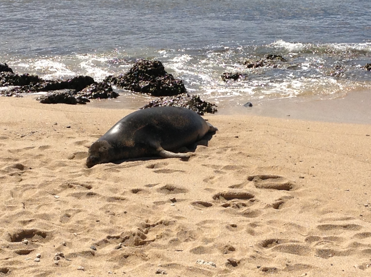 ビーチの岸辺に大きなアザラシが乗り上げていて、だら~っと昼寝をしてました。