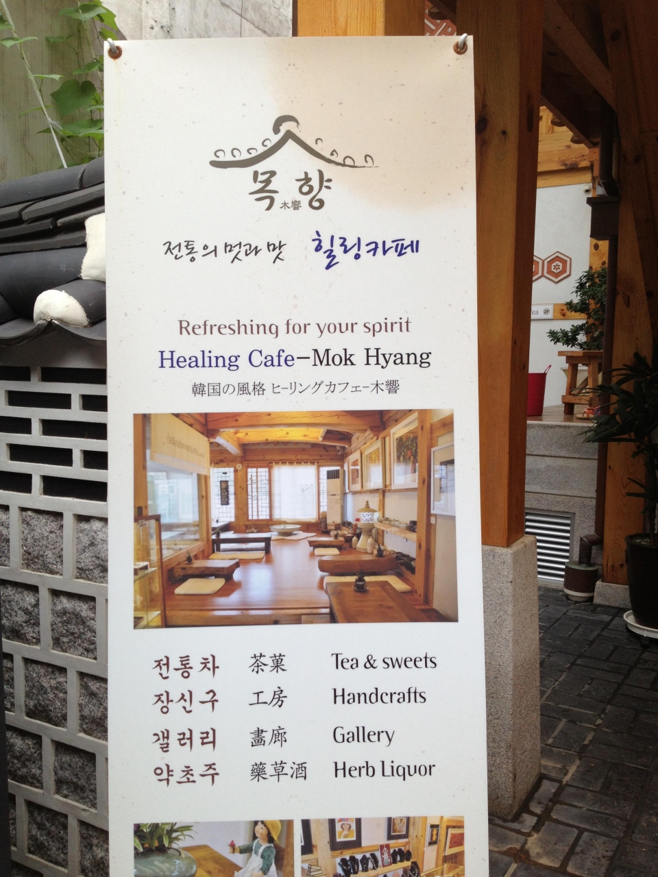 メニューは日本語表記があったように記憶していますが、それぞれ冷たい五味子茶を頼みました。(ご存じの方も多いと思いますが、五味子茶とは、苦味・甘味・酸味・塩味・辛味の5つの味が飲む人の体調によって変わると言われている飲み物です。)韓国風の室内でゆっくりと雰囲気を味わいながら休憩できますので、仁寺洞での休息にお勧めです。