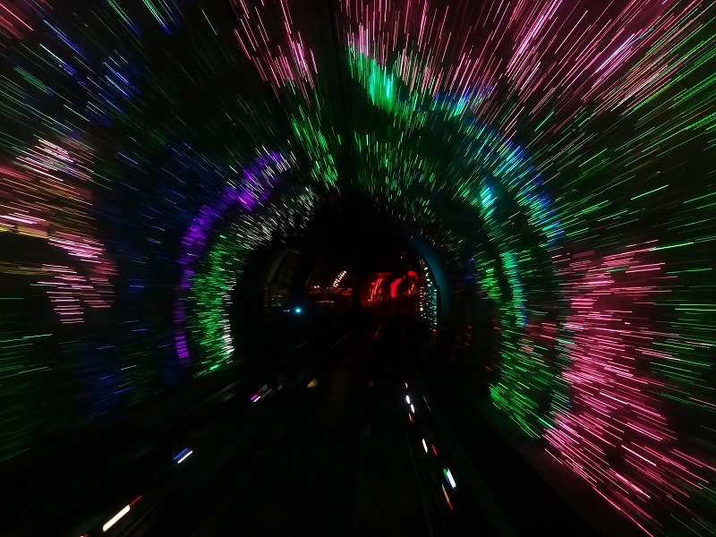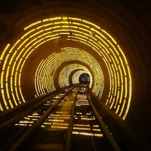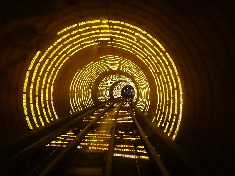 黄浦江(浦東と浦西の間に流れる大きな川)を渡る観光用のトンネルです。トンネルの中にはレールが敷いてありそこをゴンドラのような乗り物に乗りわたります。トンネル内には光の装飾が施されていますが、正直なんの面白みもありません。また値段も一人50元とかなりコストパフォーマンスは低いです。