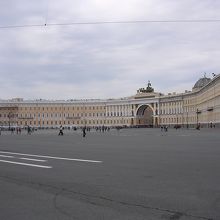 宮殿広場をはさんで、エルミタージュ美術館の向かい側にある半円型の建物で、イタリア人建築家によって19世紀に建てられました。昔、ロシアで流行した帝政様式を代表する建物です。現在も軍の関係者が一部を使用しています。