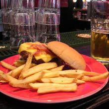 深夜便で出発するために夜10時ころに入りました。(空港内の飲食店は少なめで選べません。)音楽がちょっとうるさく、雰囲気はいまいちでしたが、スタッフの応対は悪くはなかったです。バーガーとビールで約20ドルでしたが、「チップは含まれていません」とBILLに書かれていたので、2ドルを追加。高い気がします。