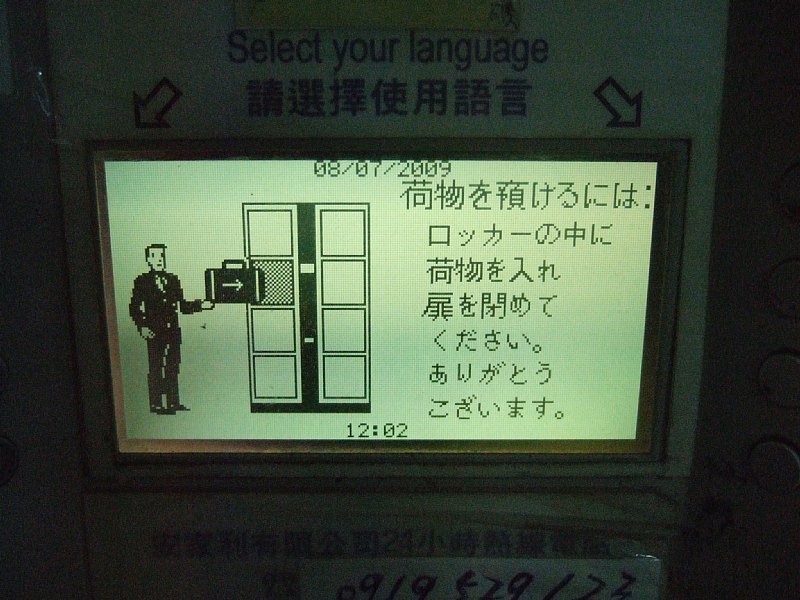 あとはコインロッカーがあって、このロッカーは日本語に切り替えて使うことができる。まぁ、若干変な日本語だけど(笑)