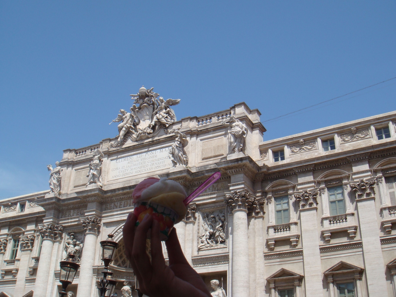 なんだかこじんまりした感じもありましたが、ココがトレビの泉か・・・と感動しました。すぐそばにジェラートのお店があって、ニコニコしていると、サービスで2種類のところ3種類入れてもらえてラッキーでした。私は確か、日本硬貨を投げました!