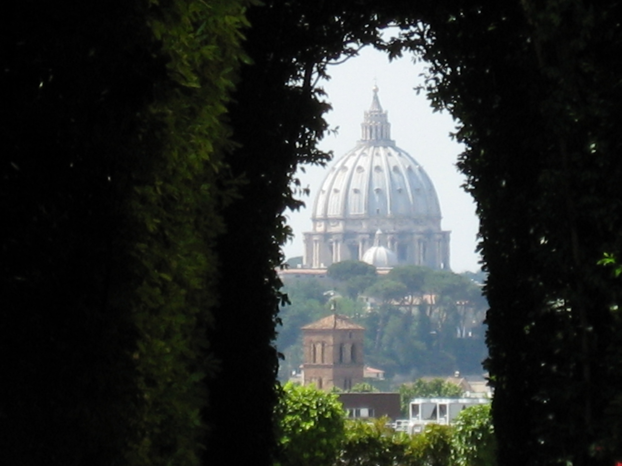 当時、地球の歩き方という本に鍵穴を覗くと・・・サンピエトロ大聖堂のクーポラがまるではめ込んだかのように見える♪という記事が載っていたようで、見に行きました。道はややこしく、迷いながら言った記憶が・・・鍵穴を覗くと本当に、ぴったり見えて、写真がうまく撮れました♪