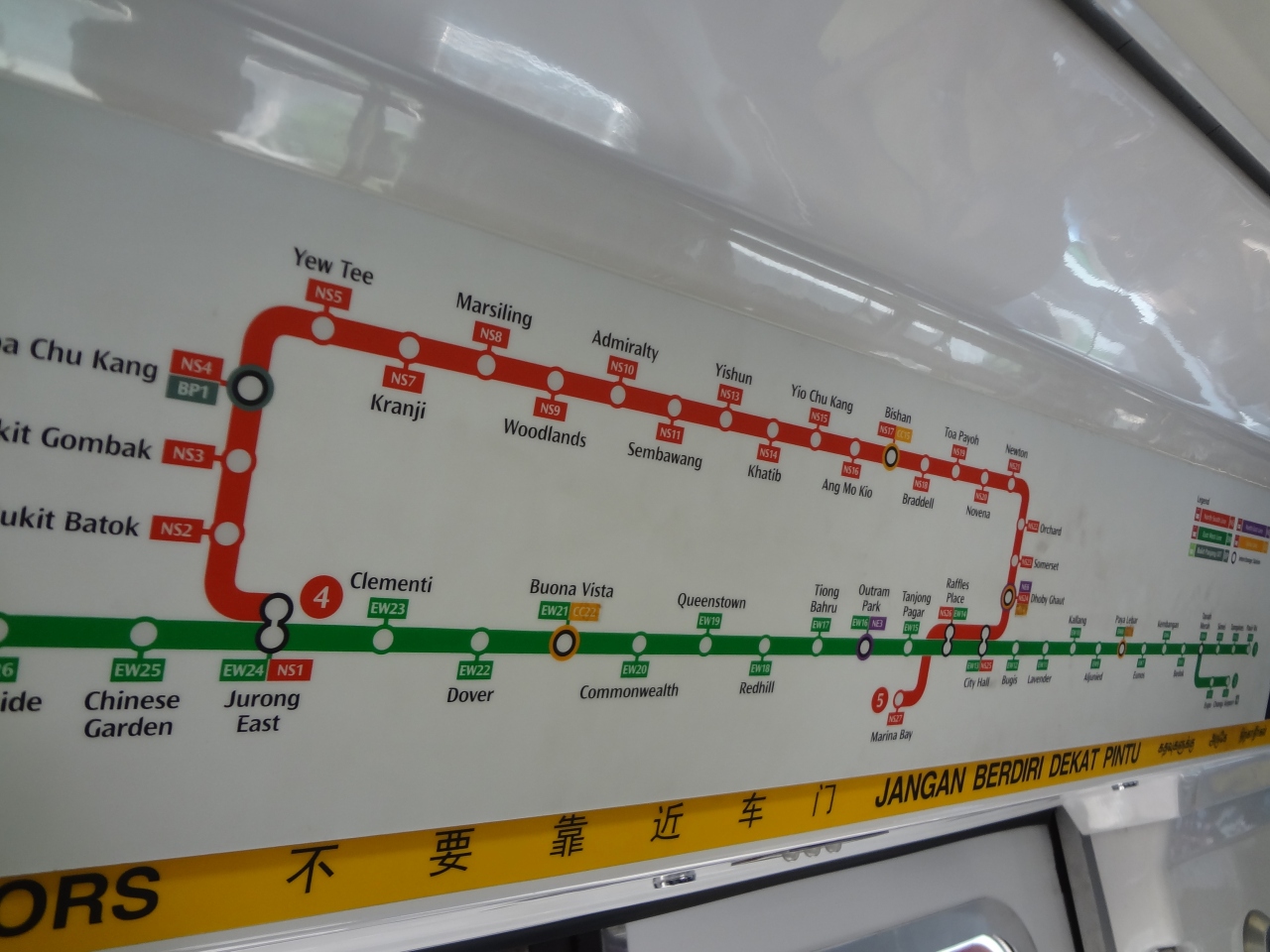 チャンギ空港からマリーナベイサンズがあるベイフロントまで乗車しました。安く行こうと思って利用しましたが、着くまでに何回か乗換えがあって、スーツケースを抱えた身としては、ちょっと面倒でした。駅や車内はきれいです。また駅には案内係りの人がいて、途中の乗り換え時に、マリーナベイサンズまで行く際に乗る電車の説明などをしてくれました。