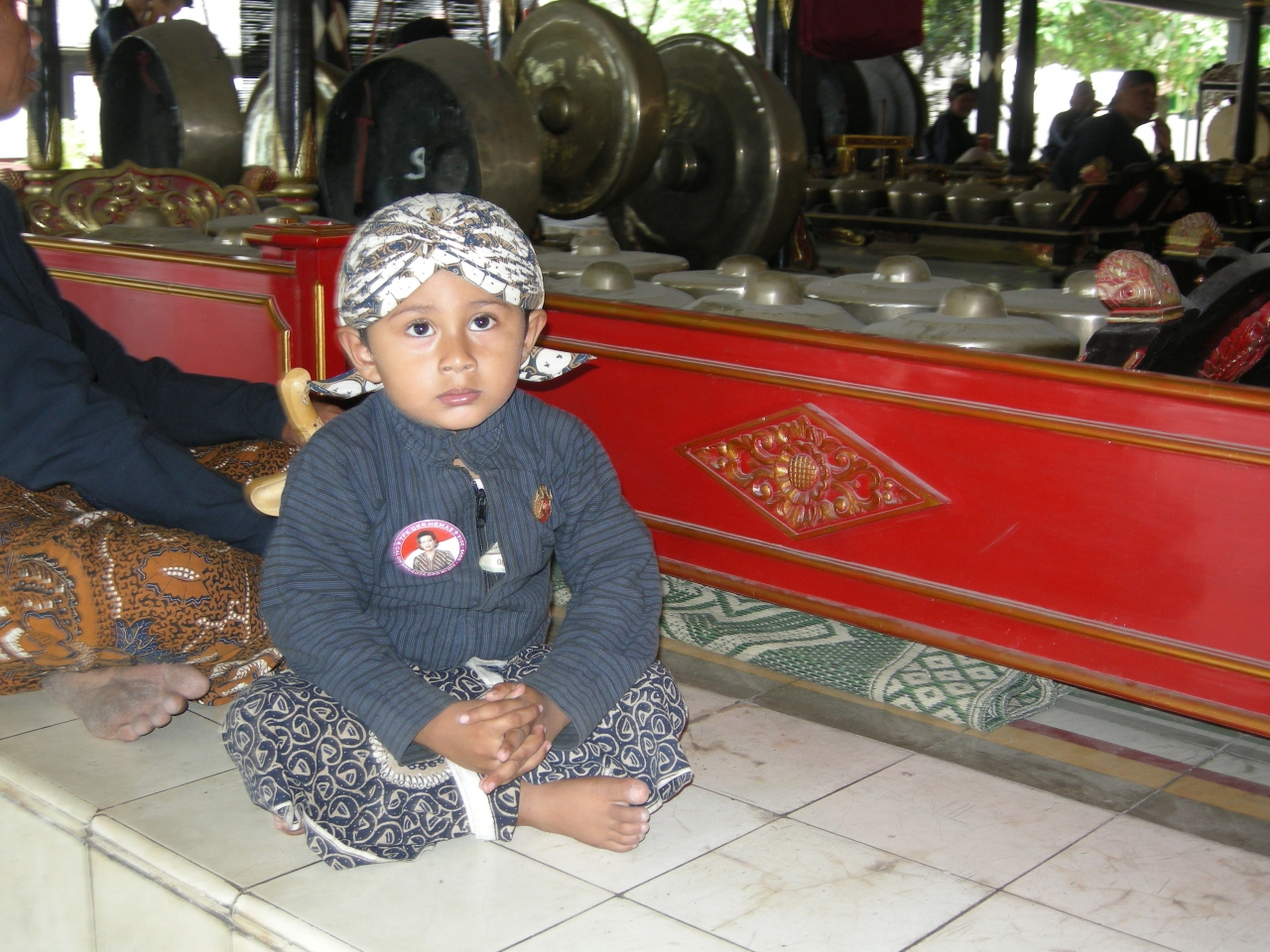 ジョグジャカルタの中心、王宮を見学しました。中庭でガムランの練習をしていました。小さな子供も見よう見まねで練習しており、すごくかわいらしかったです。王宮にはお宝がたくさん展示してありました。ものすごくゴージャスというわけではないですが、清潔ですっきりした感じが気に入りました。