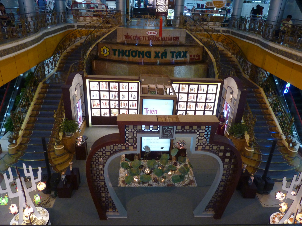 疲れたら各階ごとに椅子も置かれ至れり尽くせりで、食堂も数件あり、値段により選ばれる。おまけに1階では、よく催し物が開かれ、買い物客を楽しませてくれる。