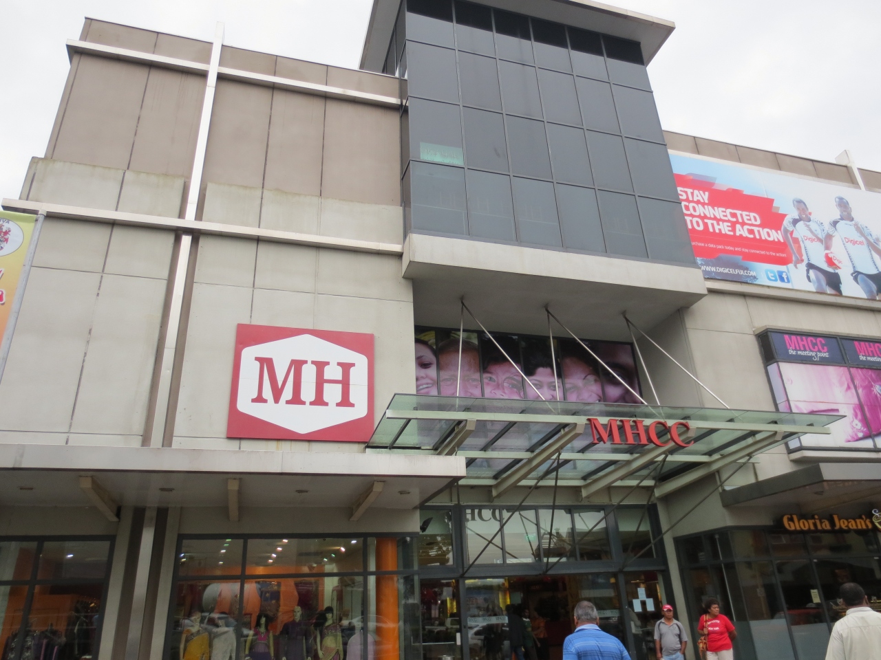 運河沿いの三階建てのショッピングセンター。日曜日も開いています。