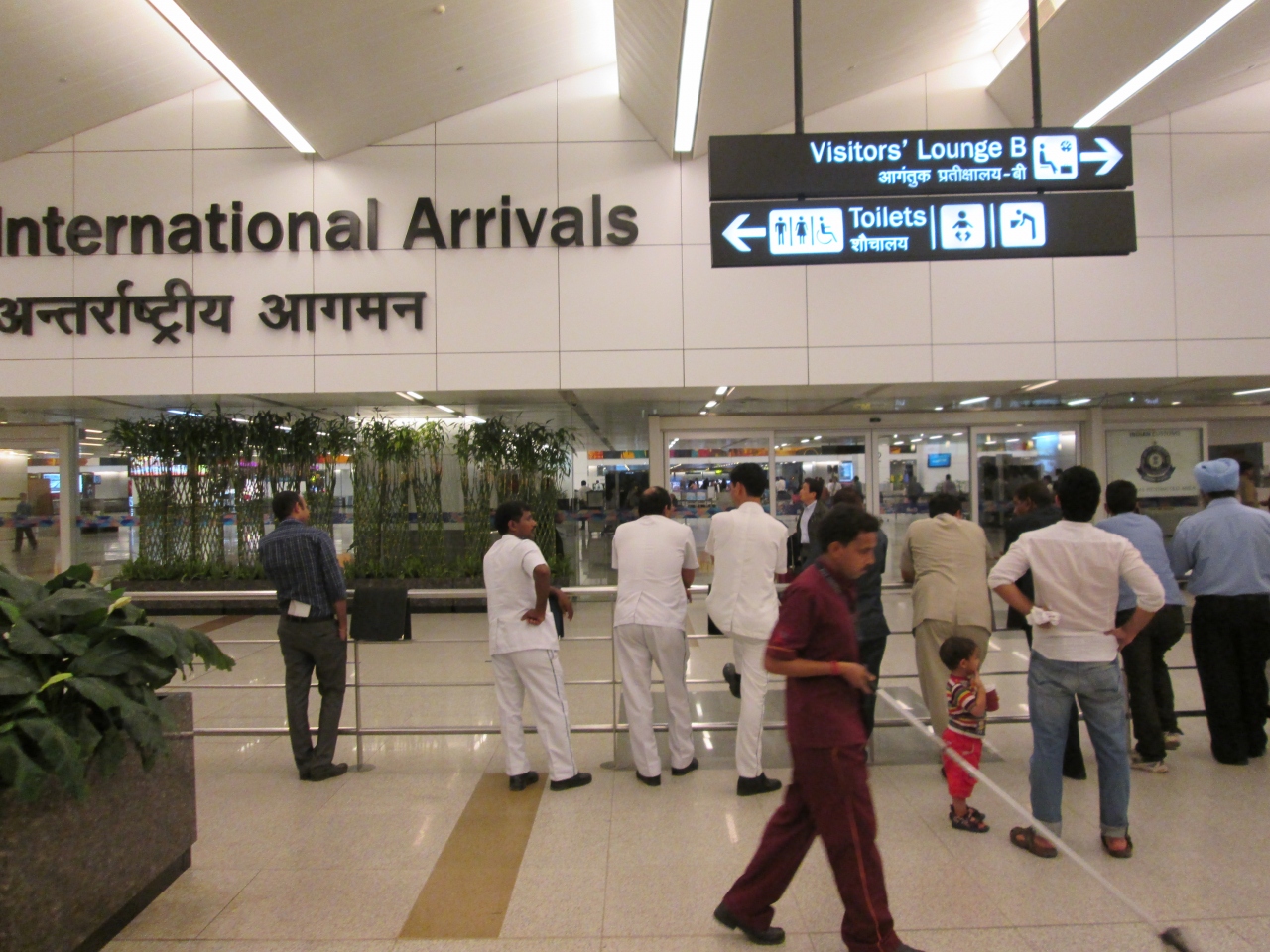 インドの首都デリーの空港です。タイのバンコクでトランジットし到着しました。インドの入国にはビザが必要で、審査に時間がかかると思われたが、空いており、意外と早く入国審査を通過しました。入国審査が終了すると、出口付近にはたくさんの人がピックアップのために待っていました。