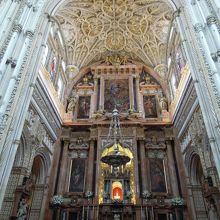 有名な柱は、赤と白の美しいデザインで、イスラムの様式。