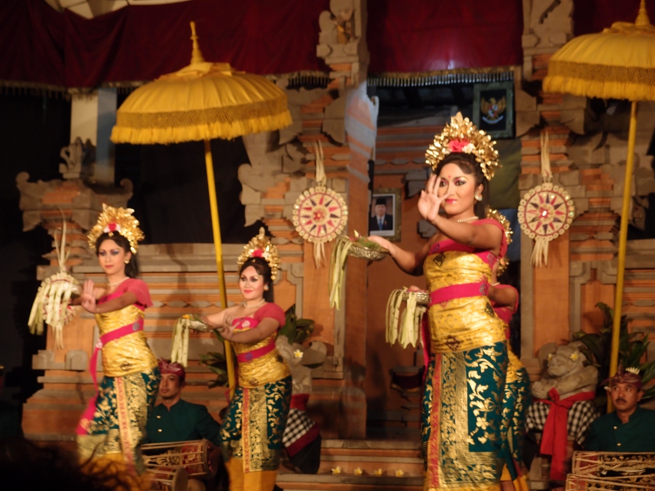ウブドで伝統的なバリ舞踏を観賞したくて「スピリット・オブ・バリ」を観にいきました。これはスマラ・ラティというインドネシア国立芸術大学出身のメンバーが中心のグループによるバリ舞踏公演で、リーダーのアノム氏はバリダンスの第一人者だそうです。