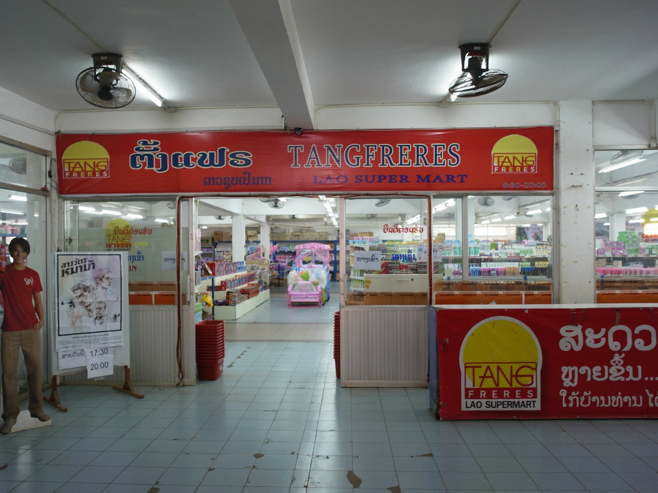 Pakseの中心部に立地するダオファン市場。市場の中にはラオスには珍しい少々大きめの(ラオスにしてはですが)スーパーマーケットもあります。市場では生鮮食料品のほか携帯電話や家電、服などを売る多様な店が軒を連ねています。