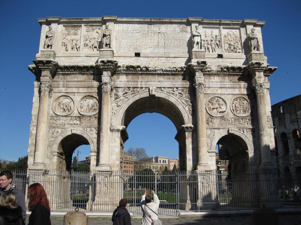 コンスタンティヌスの凱旋門は副帝コンスタンティヌス帝が正帝マクセンティウス帝に312年にミルヴィオ橋の戦いでの勝利を記念し315年に作られた凱旋門で高さは約25m・帝政ローマ時代の凱旋門で最も大きいと言われているらしいです。ちょうどこの場所で結婚式をしていました。ちなみに一緒に写真撮ってくれる剣士は高額請求してくるらしいです。