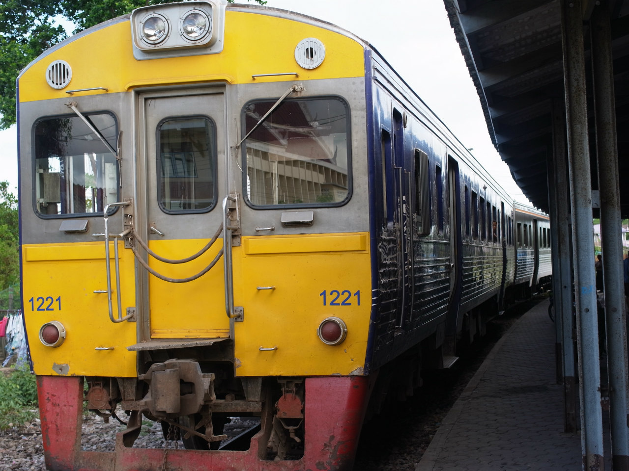 パタヤからバンコクへの列車は一日一往復の各駅停車のみになります。乗り合いバンだと一時間半ほどの距離を冷房なしの各駅停車で4時間かかるのはなかなか辛いものがありますが、鉄道ならではの車窓や地元客とのふれあいを楽しむにはいいかもしれません。