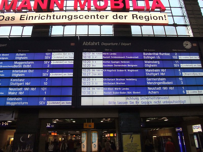 マンハイム~カールスルーエ間は、RBなら約一時間。ICEの停車駅でもあるので、戻りはICEを利用したら20分少々だった。