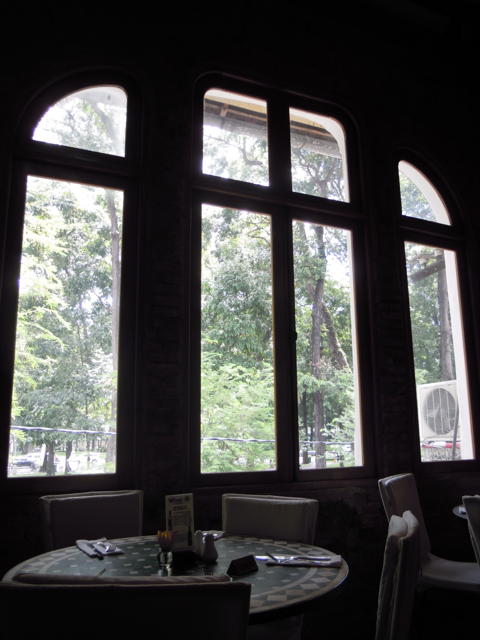 聖マリア教会や中央郵便局などにほど近く、公園の目の前にあるカフェです。