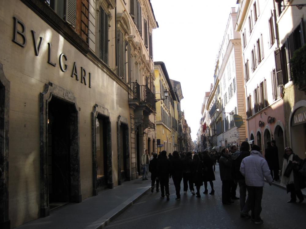 コンドッティ通りはスペイン広場の西側にあるコルソ通りに向けて伸びているブランド店が並ぶ通りです。LOUIS VUITTONやDOLCE&GABBANAなどに入り色々と物色しました。コルソ通りまで出ればコルソ通り沿いの雑貨屋やカバン屋などがあり、サルディであれば半額だったり安いです。