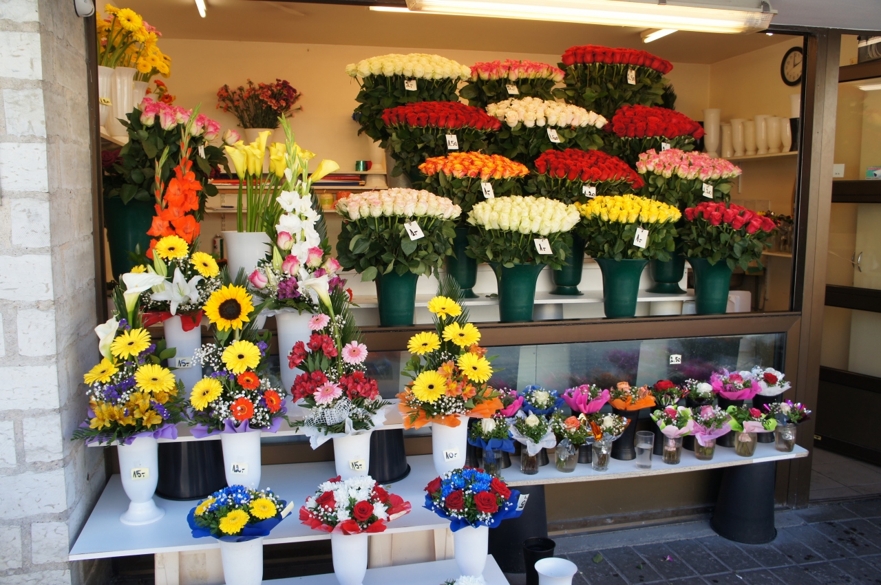 新市街側の通りには、花屋が軒を連ねていて、とても綺麗!