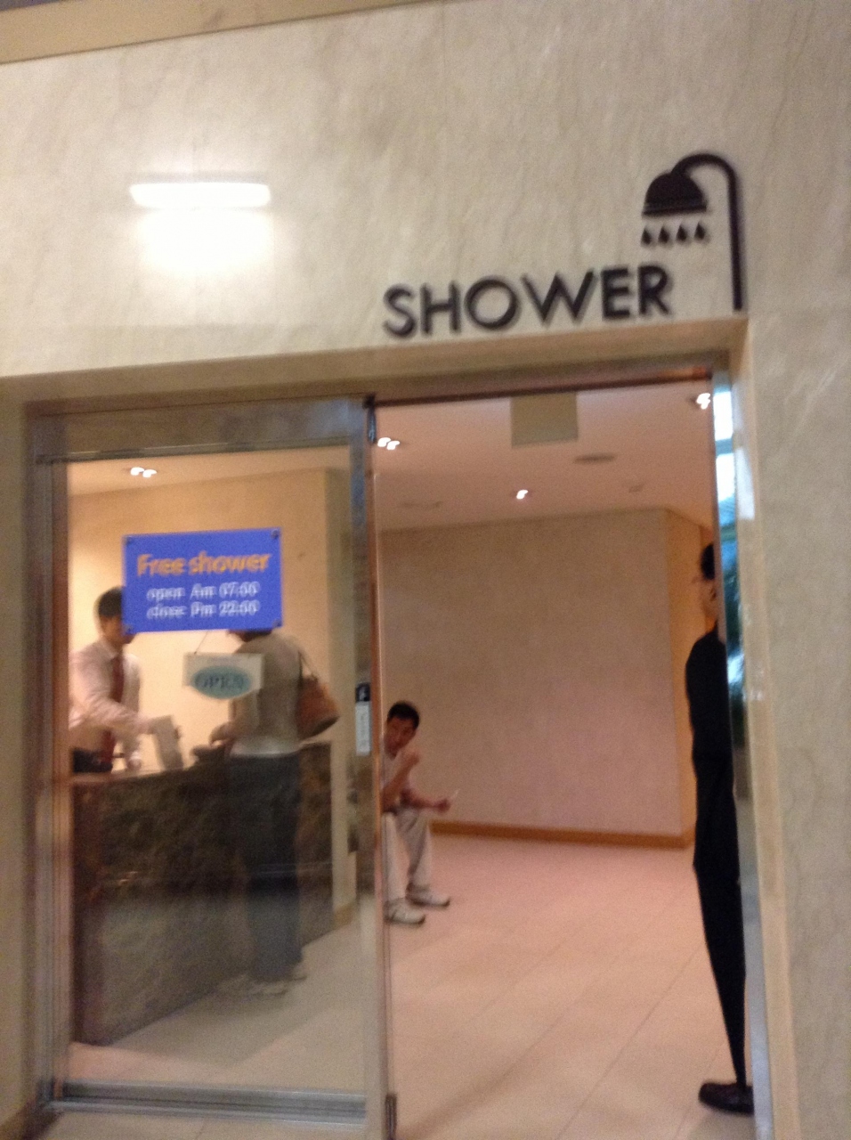 フリーシャワー、一定以上のステージのクレジットカード所有者が使えるフリーラウンジには日本語案内もありました。