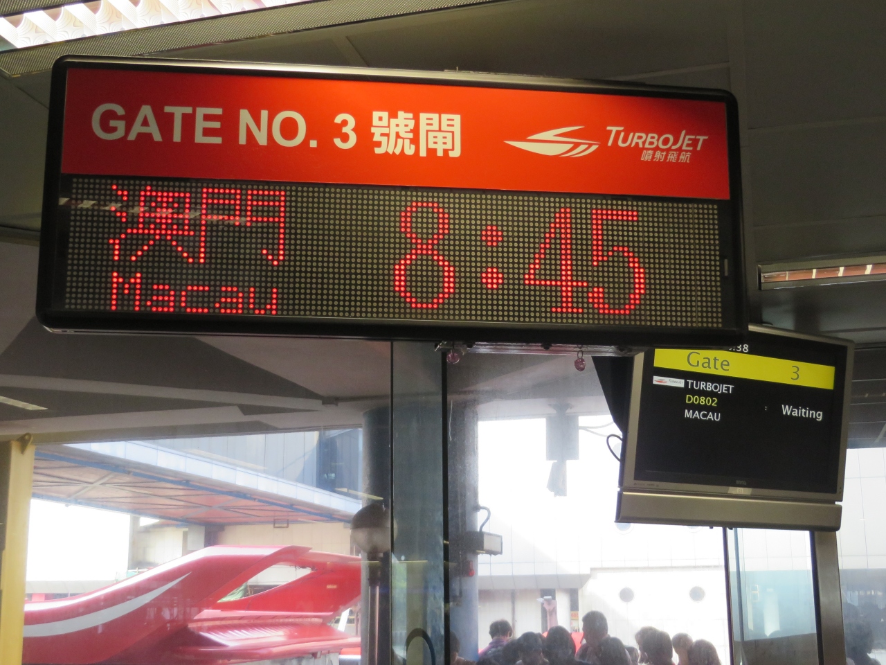 このターミナルからは日中帯は15分に1本、夜間でも1時間に1本程度のフェリーが出ており、文字通り香港におけるマカオへの玄関口となります。
