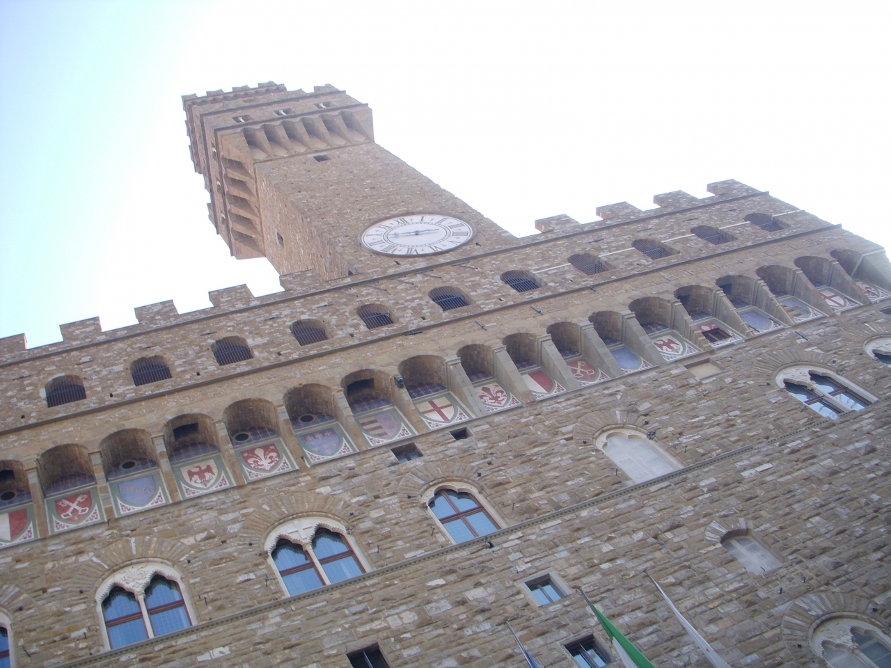 シニョーリア広場に到着するとありました。ダヴィデ像が目の前にある、中心には時計がついた塔がそのものです。観光客は広場も多いので、おのずとにぎわいますが、混雑するというほどはなかったので安心して観光ができます。
